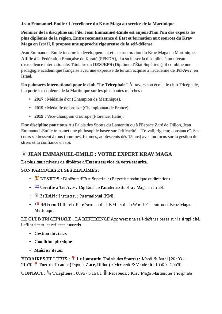 Page Officielle : https://www.facebook.com/kravmagamartiniquetricephale